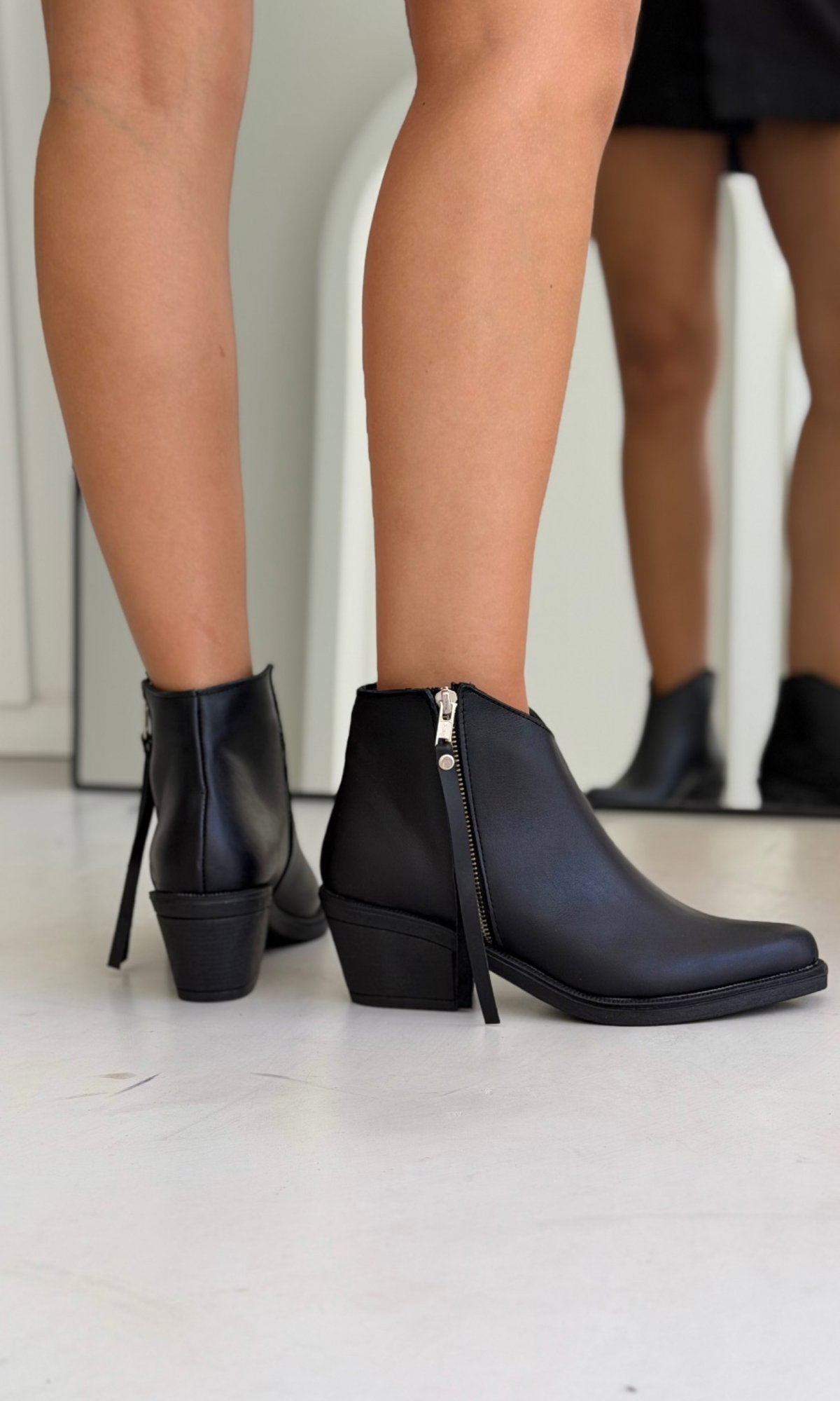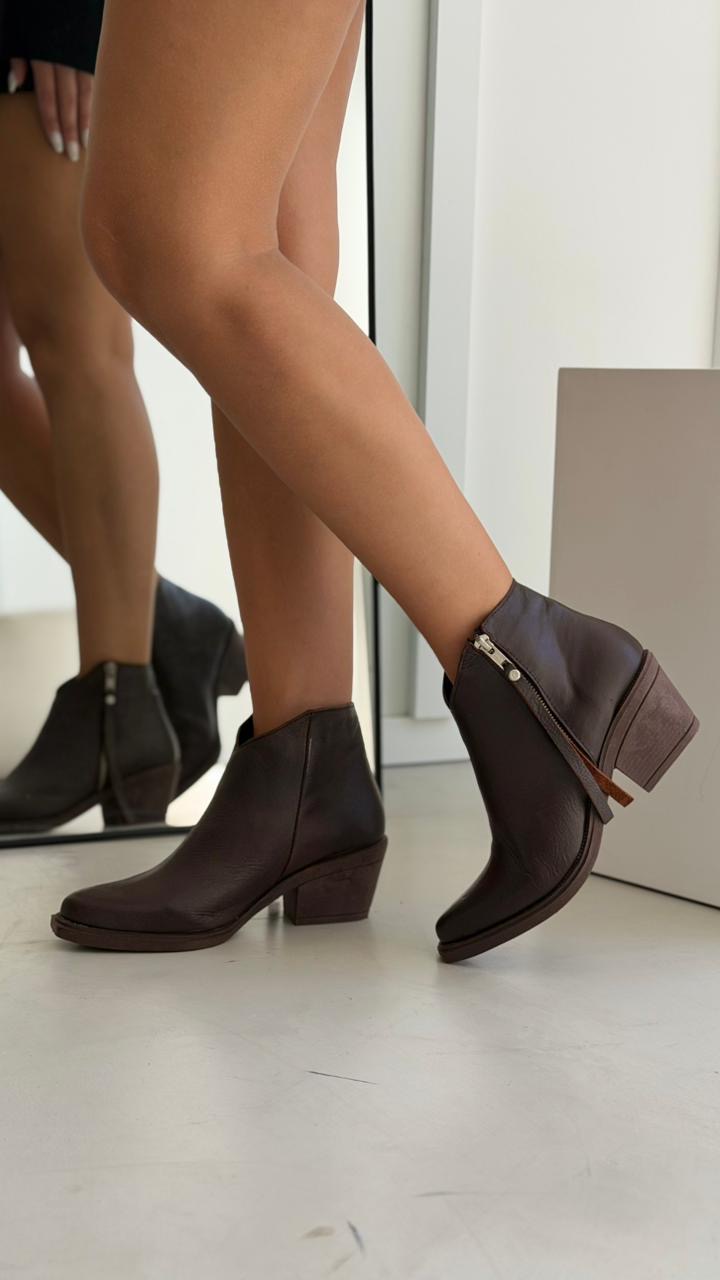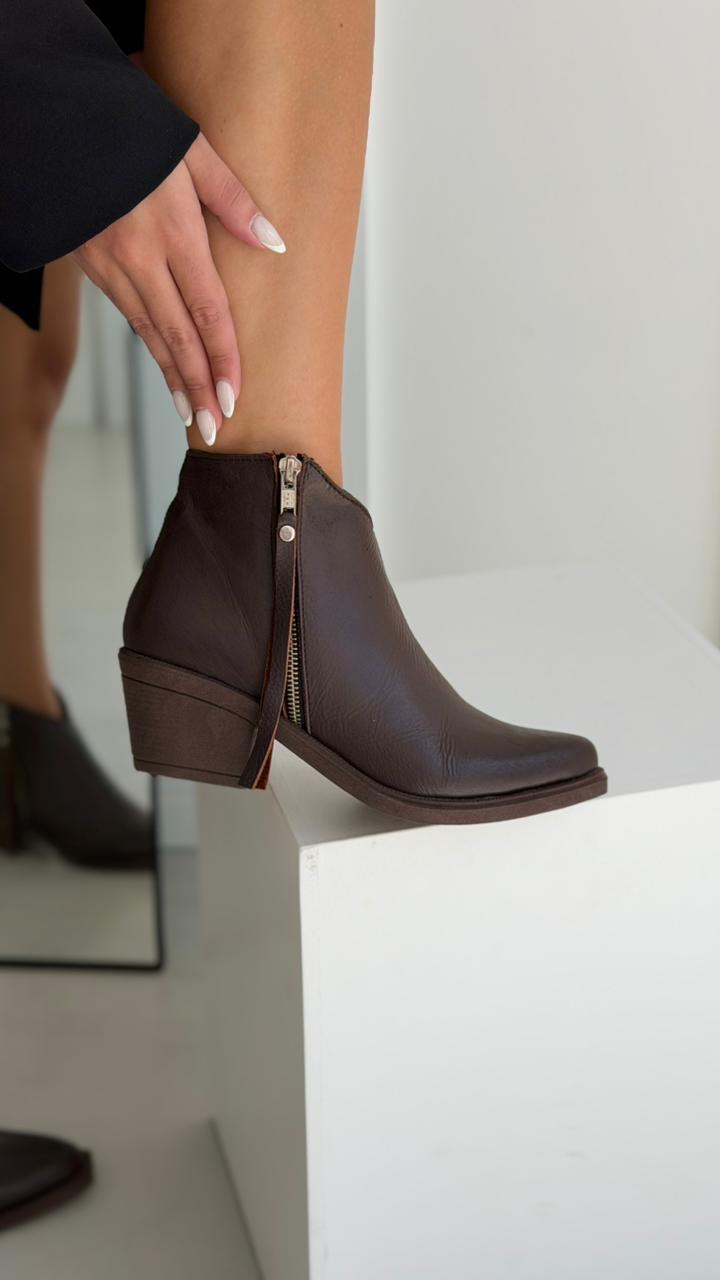 Botas en punta con detalle en aplique . Base TR y cierre lateral. Taco aprox 6 cm
