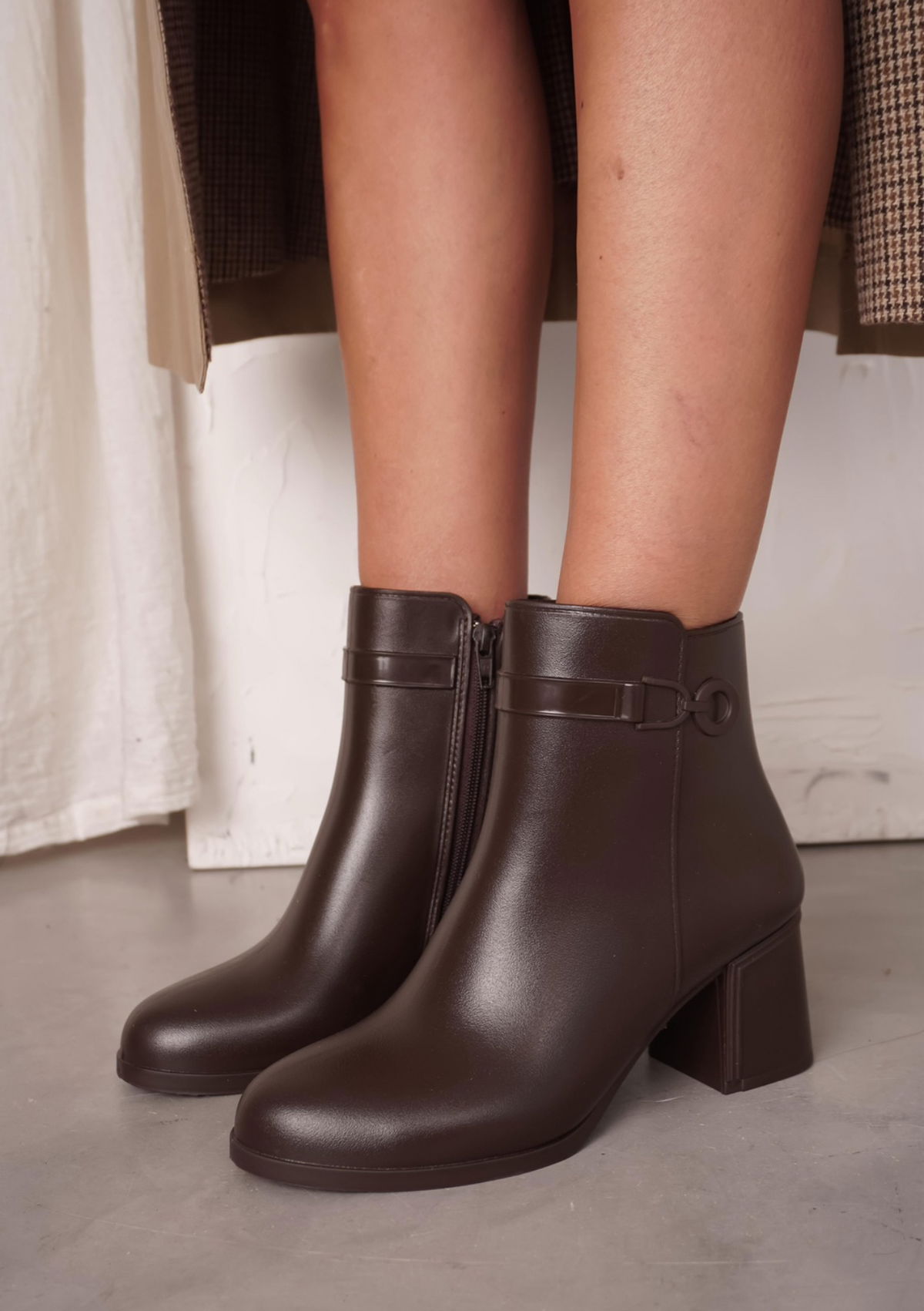 Botineta de lluvia con diseño moderno y detalle de herraje lateral que la hace distinta. Práctica, cómoda y resistente al agua, ideal para los días de lluvia sin dejar de lado el estilo.