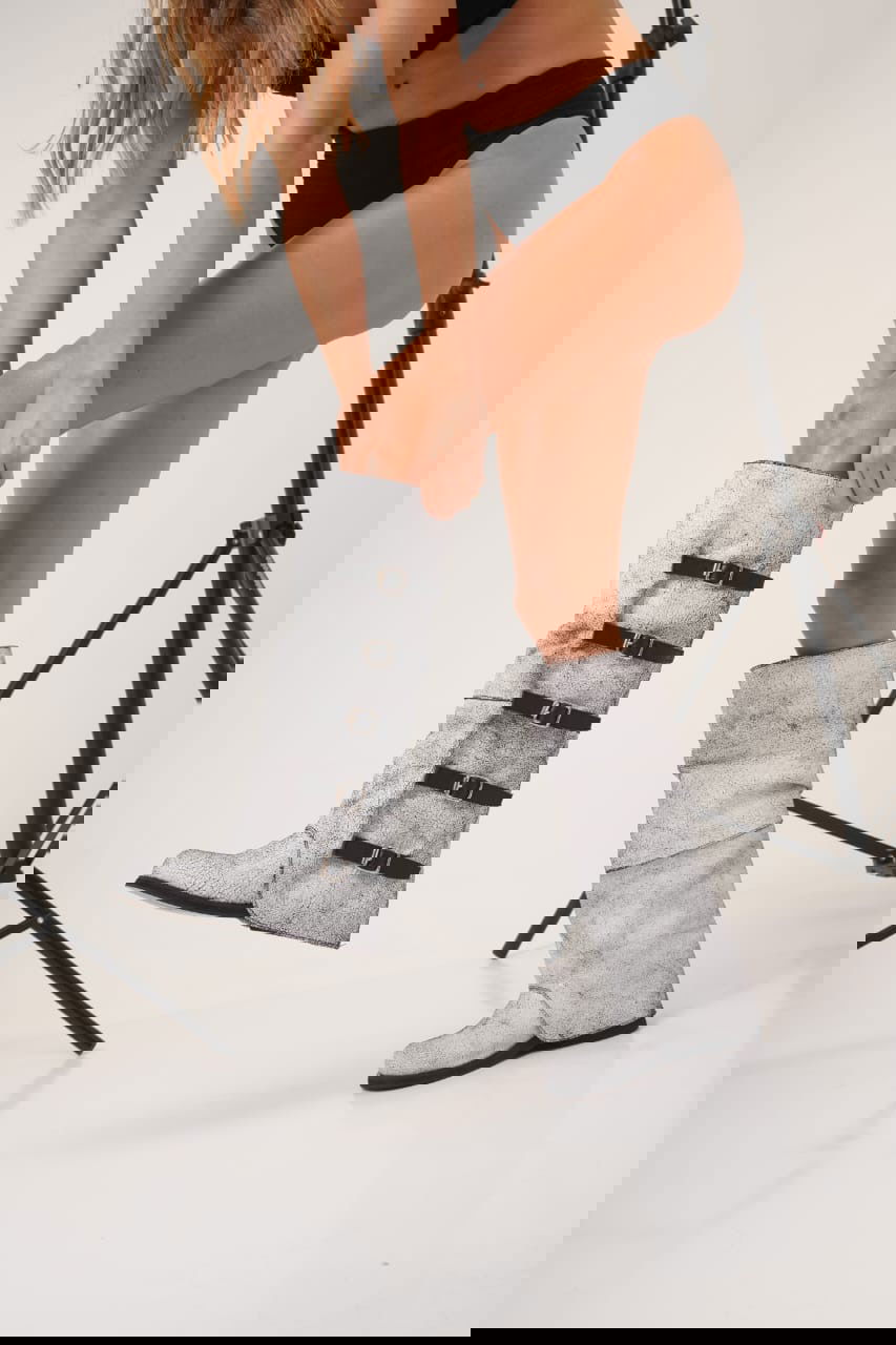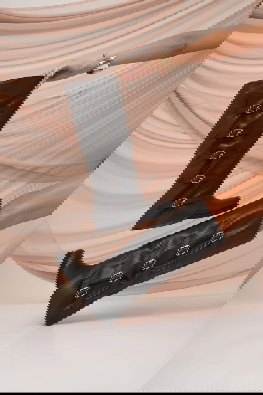 Botas confeccionadas en cuero, de diseño protagonista y estilo rock–boho, con tiras y hebillas metálicas regulables a lo largo de la caña que aportan carácter y personalidad. Presentan caña alta, punta redondeada suave y base cómoda, ideales para elevar looks urbanos y descontracturados, combinando fuerza y estilo en una sola pieza.