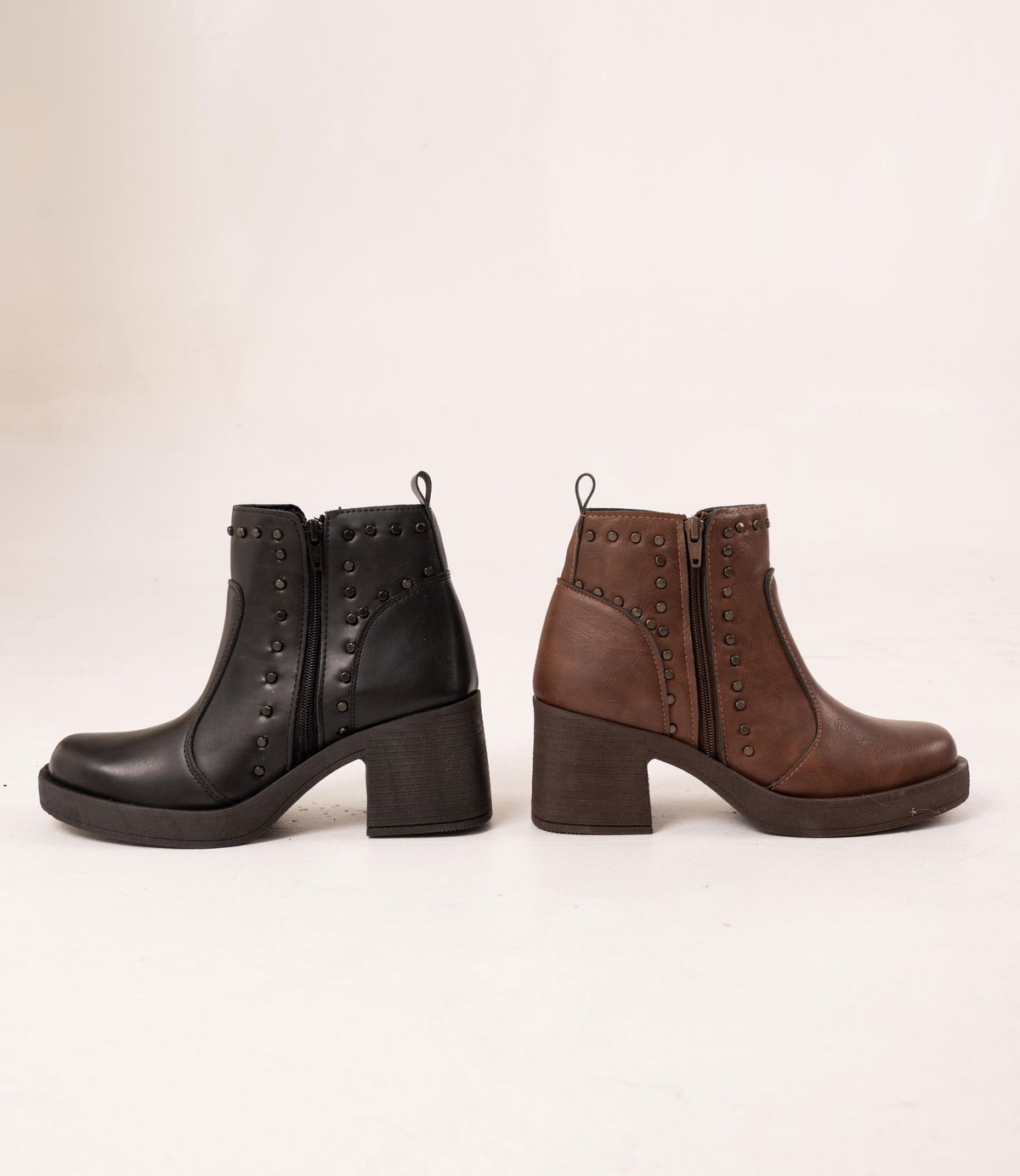 Botineta de caña baja con taco ancho y diseño moderno, ideal para sumar un toque canchero y femenino a cualquier look. Los taches laterales le dan ese detalle protagonista que la hace distinta, mientras que el cierre lateral aporta practicidad al momento de calzar. Un modelo versátil para usar de día o de noche y levantar cualquier outfit.