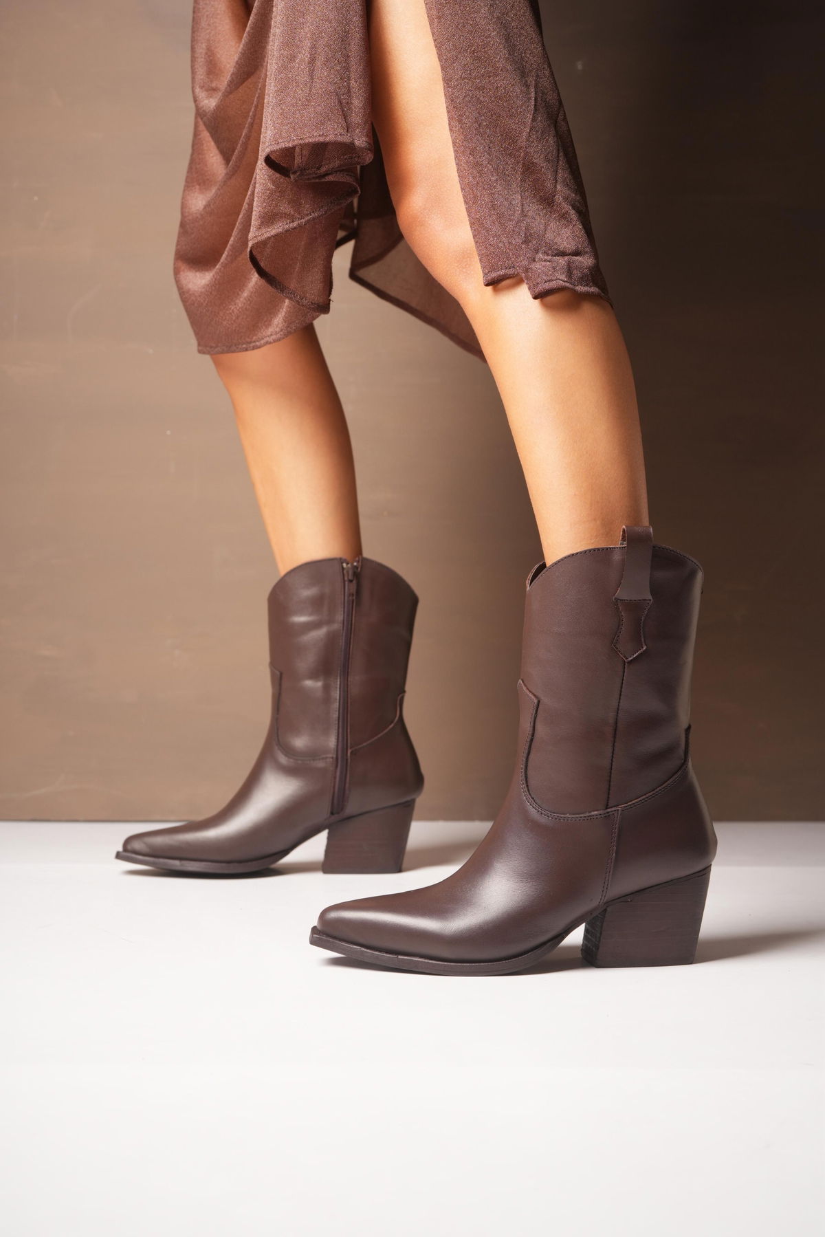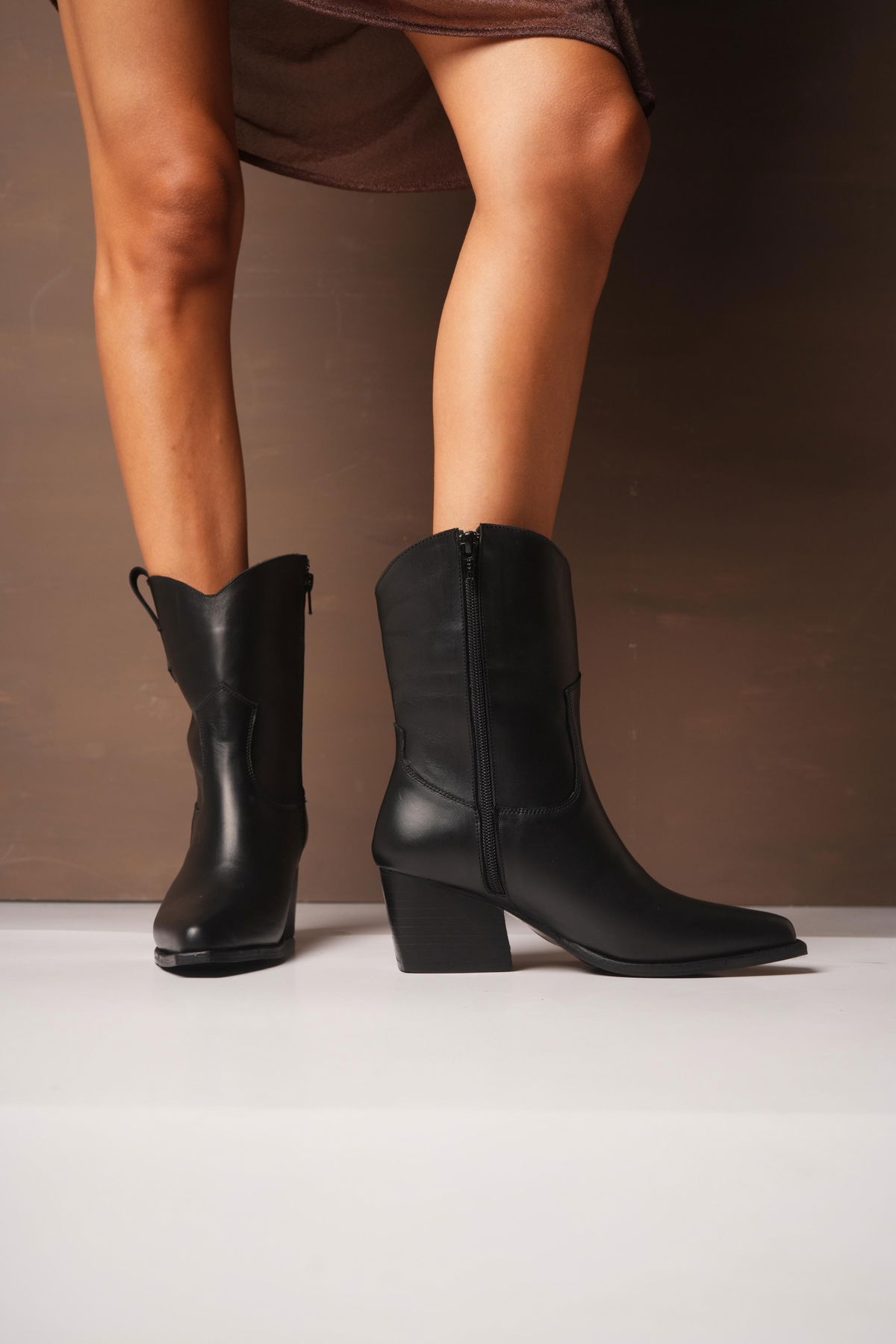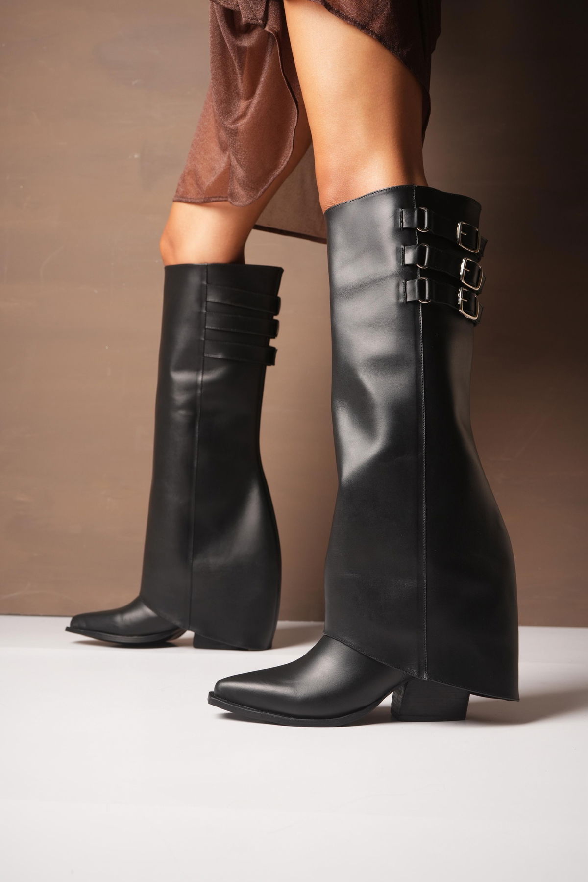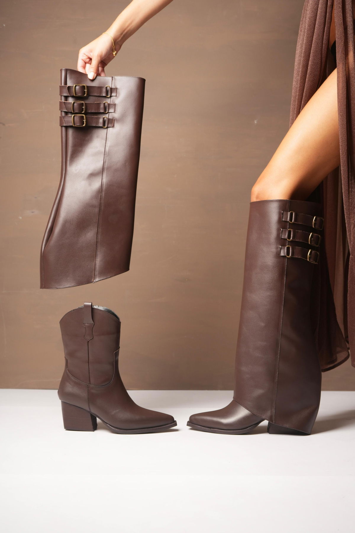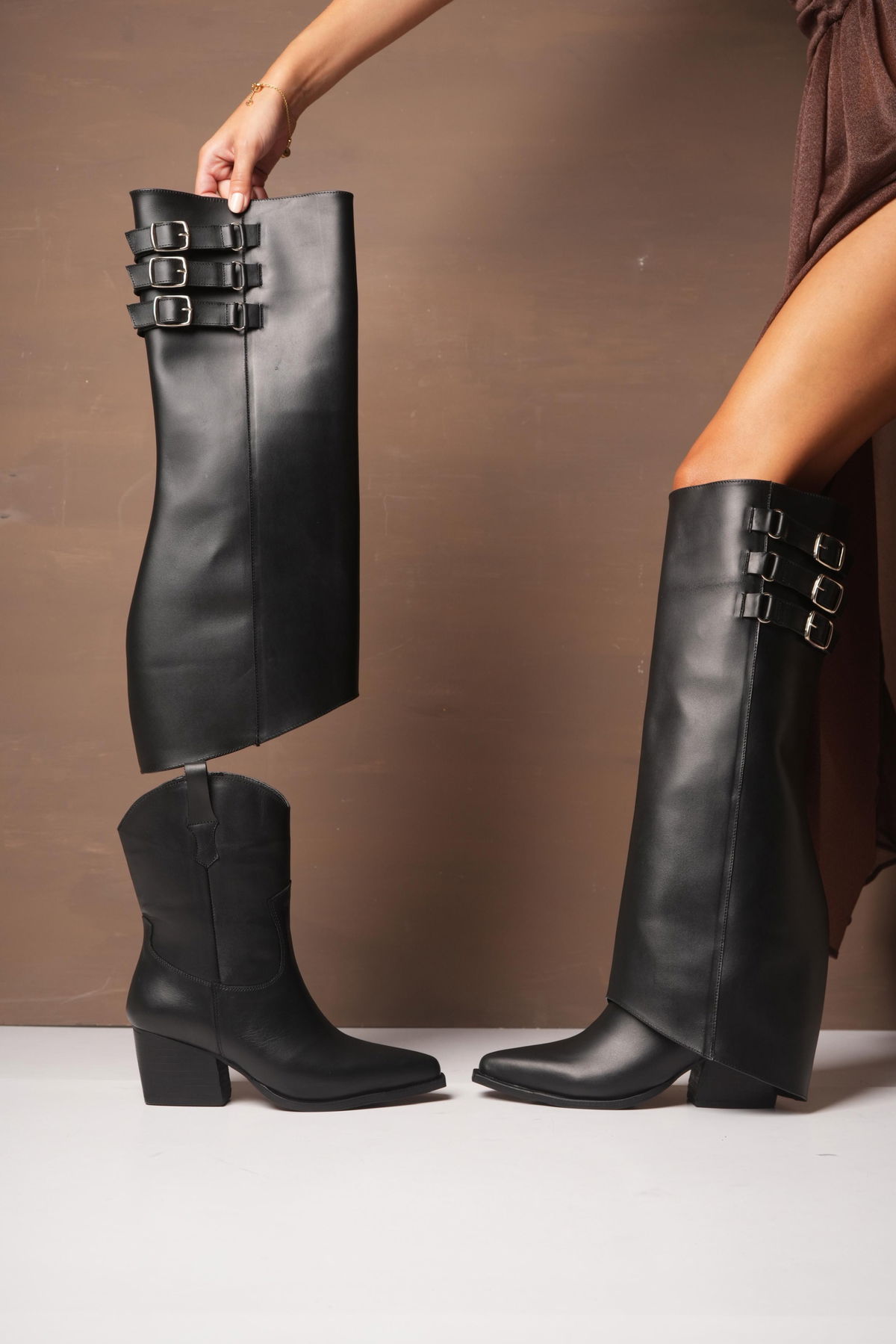 Botas confeccionadas en cuero vacuno, de diseño original y estilo protagonista. El modelo se destaca por su pollera desmontable y detalle en triple hebilla. Texana con cierre interno. El taco medio brinda altura cómoda y estabilidad, logrando un equilibrio perfecto entre elegancia y actitud. Ideal para elevar cualquier look con una impronta única.