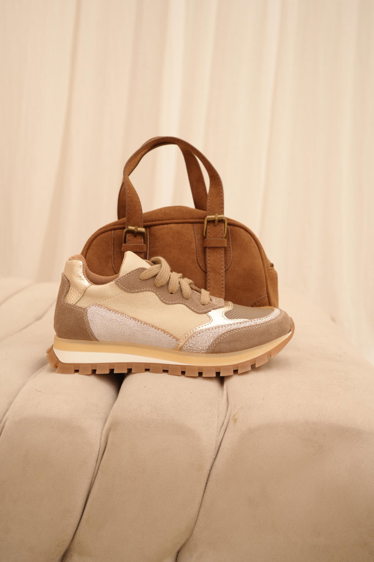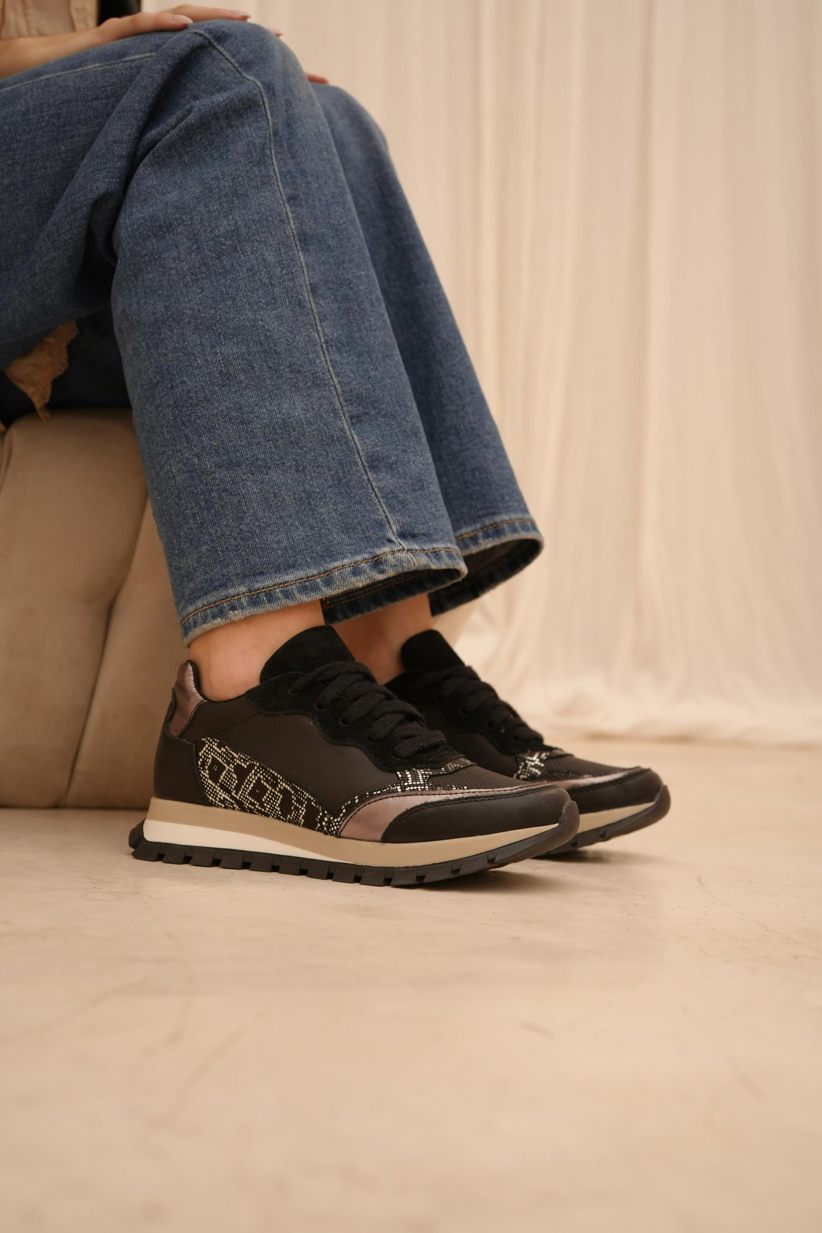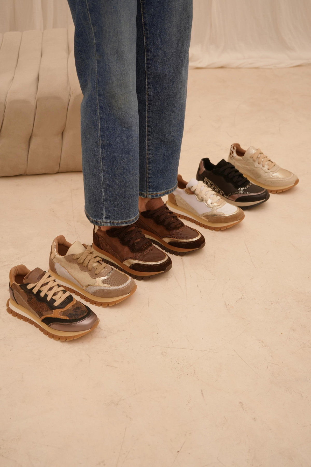 Zapatilla urbana con diseño combinado que eleva cualquier look casual. La mezcla de texturas y tonos le da un estilo moderno y versátil, mientras que su base liviana con suela dentada asegura comodidad para todo el día. Ideal para quienes buscan un toque canchero sin perder practicidad.