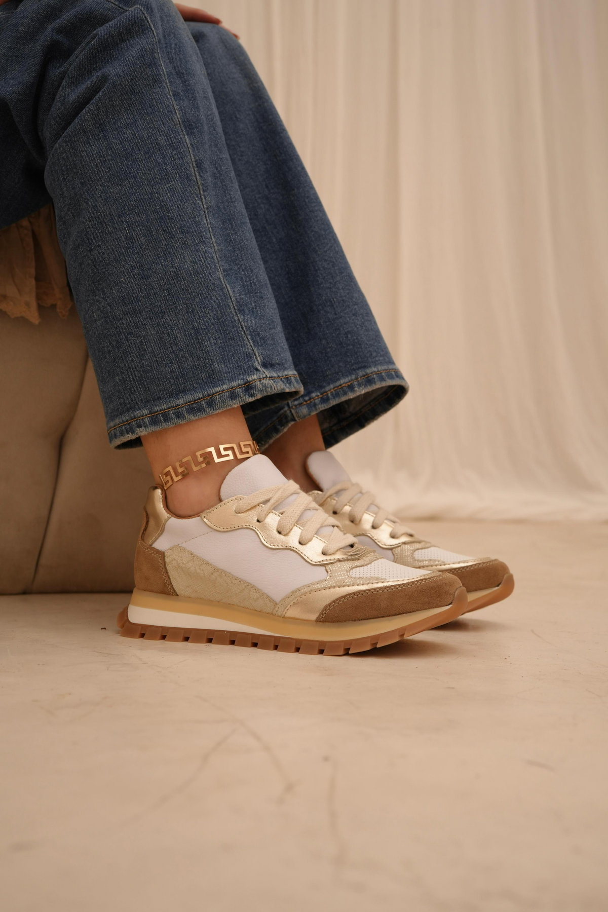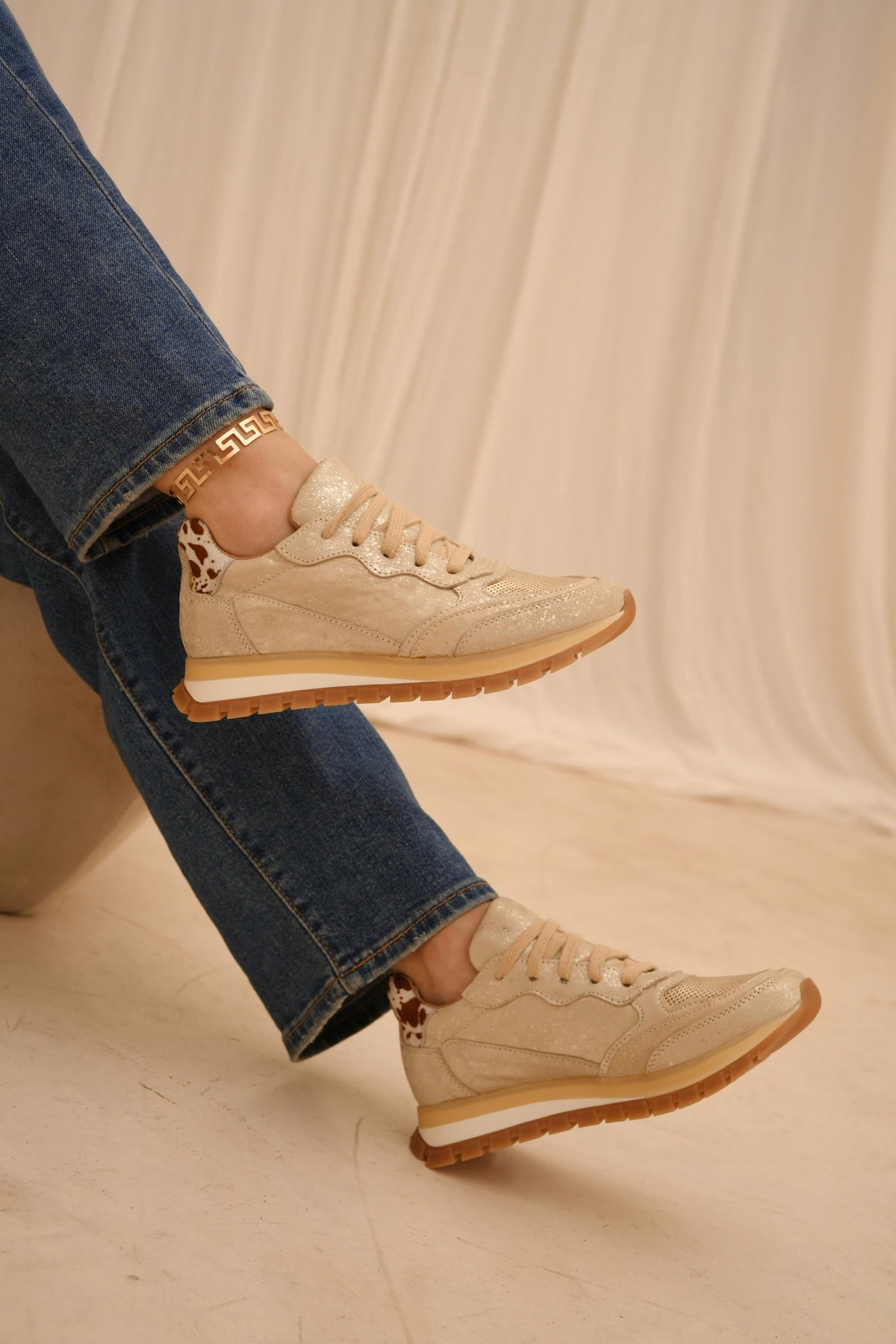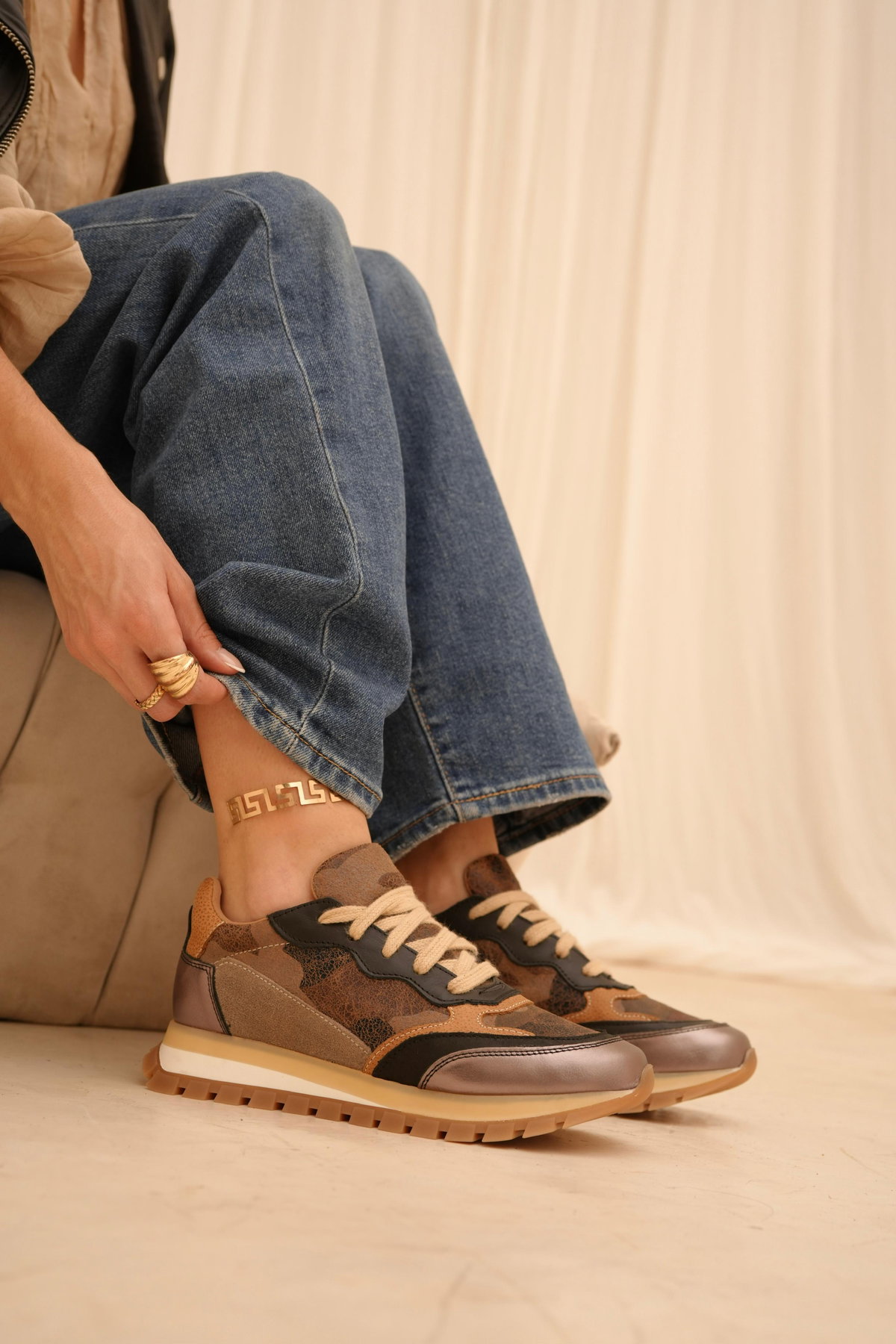 Zapatilla urbana con diseño combinado que eleva cualquier look casual. La mezcla de texturas y tonos le da un estilo moderno y versátil, mientras que su base liviana con suela dentada asegura comodidad para todo el día. Ideal para quienes buscan un toque canchero sin perder practicidad.