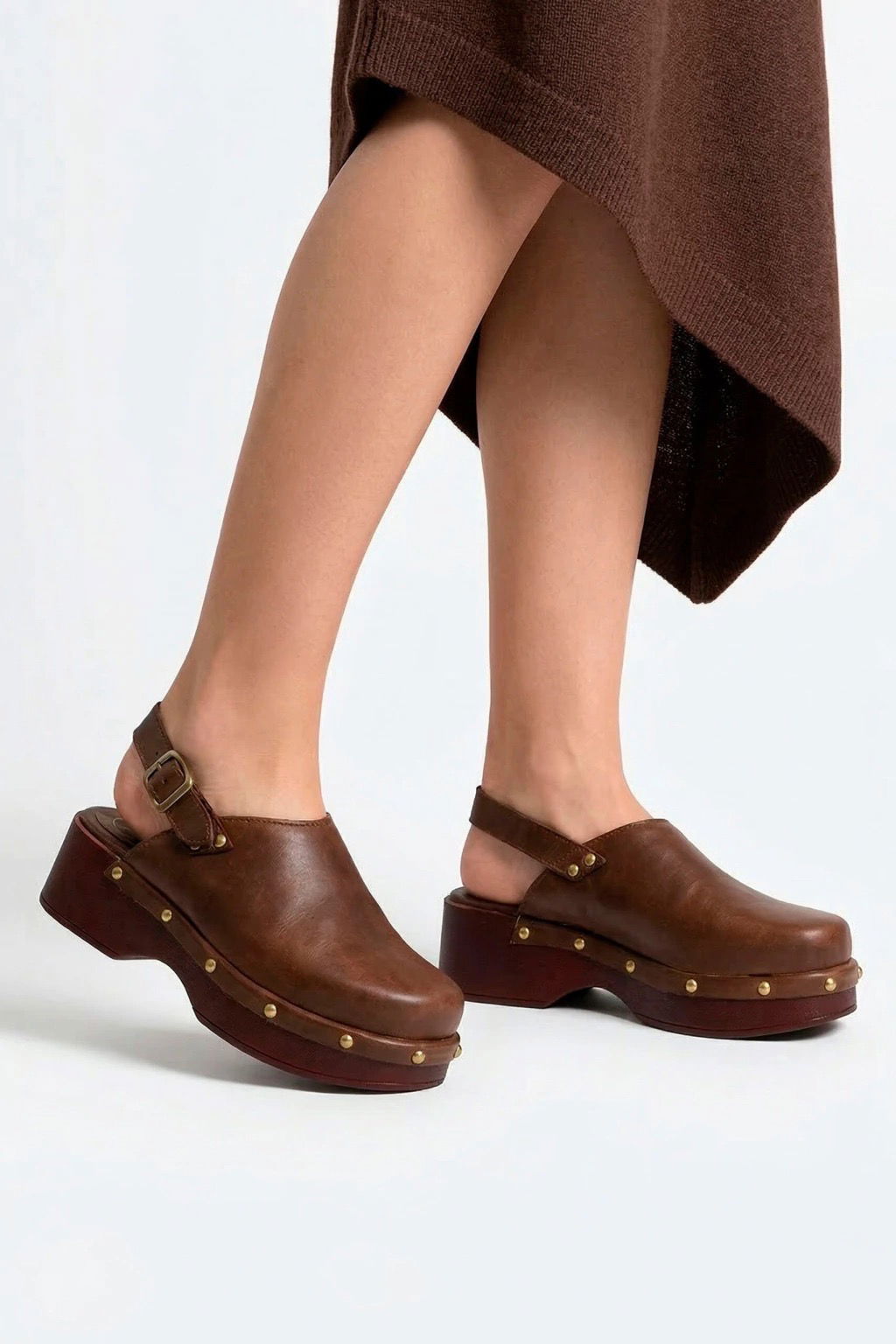 Zuecos con base liviana. Detalles en tachas. Pulsera con talonera.
