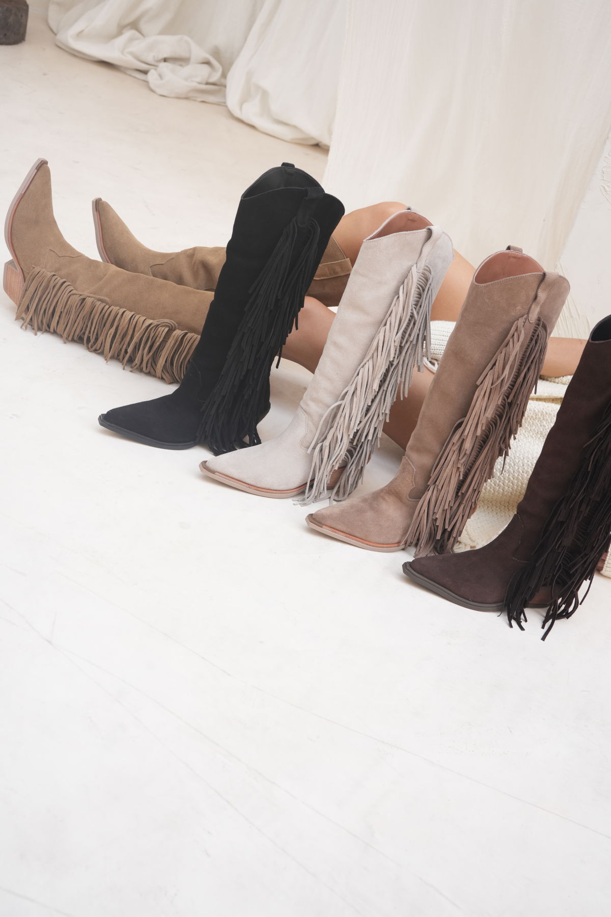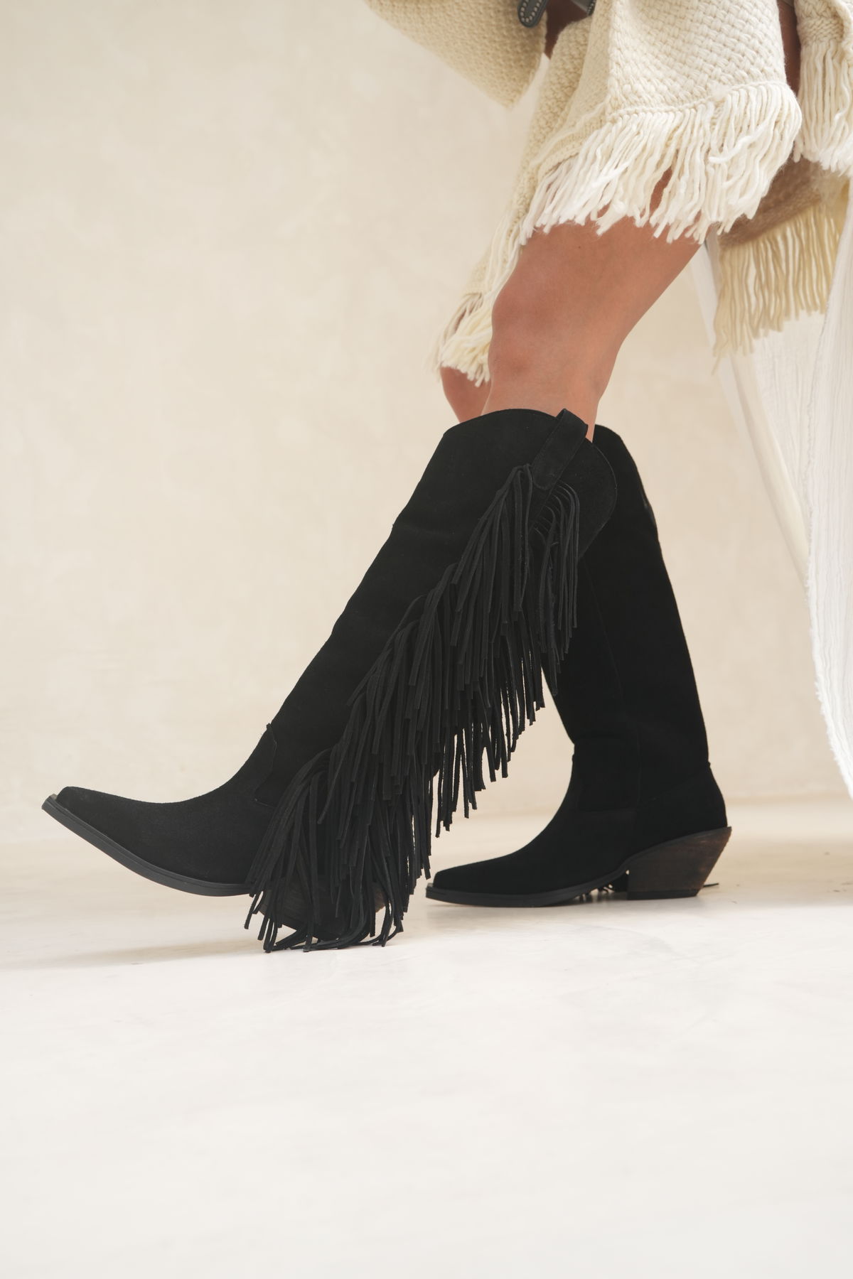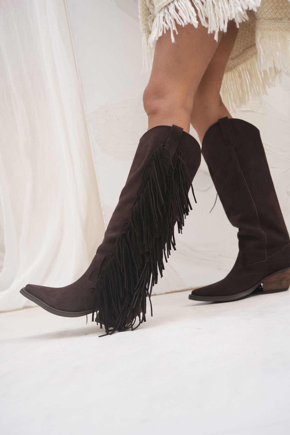 Bota de estilo texano con caña alta y flecos laterales que le dan movimiento y personalidad al look. Un diseño protagonista, ideal para quienes buscan un toque boho y canchero que levanta cualquier outfit.