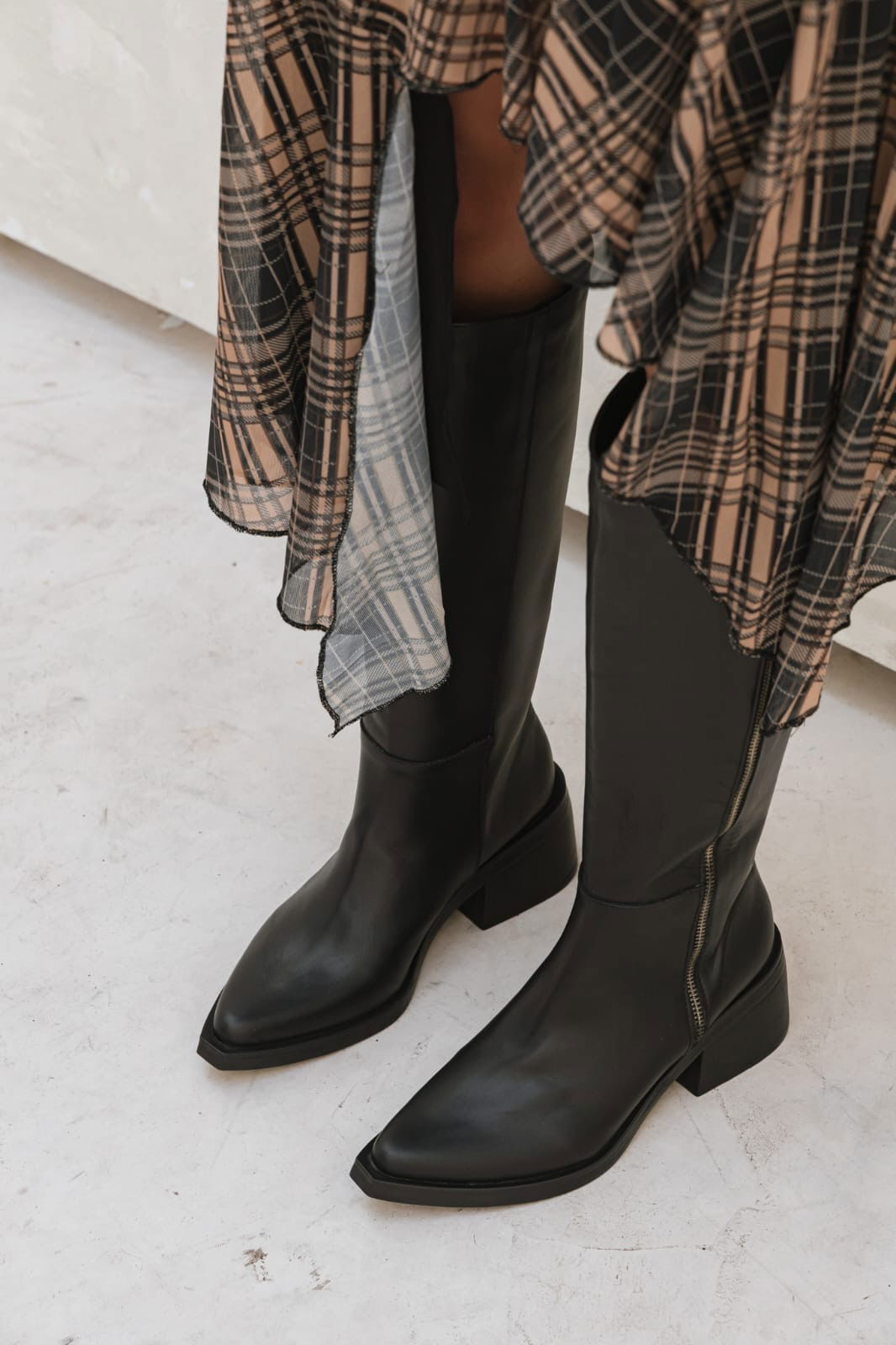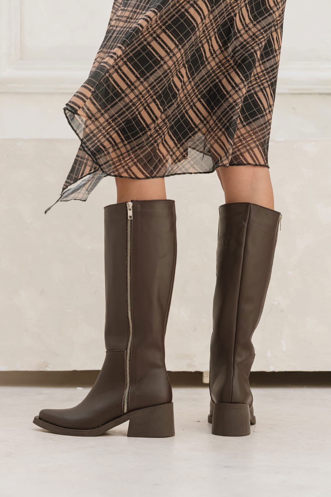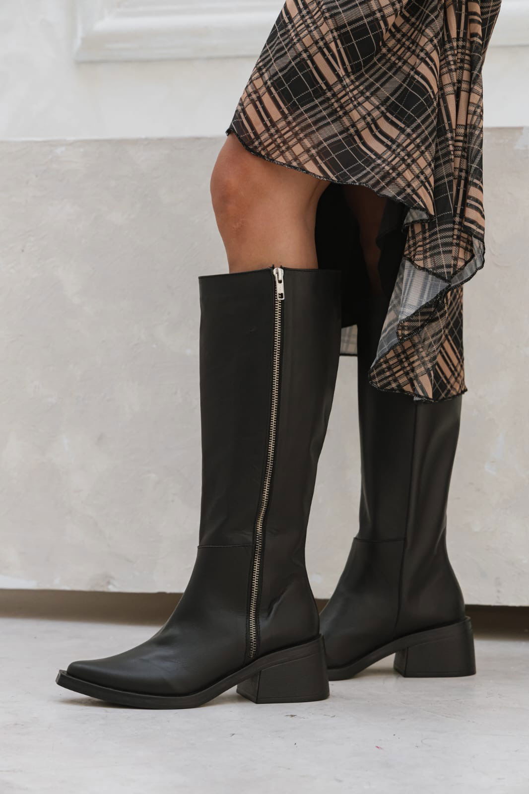 Bota caña media de diseño minimalista con cierre lateral que estiliza la pierna y suma un toque elegante a cualquier look. Su taco cómodo de 5 cm, la hace ideal para usar todo el día sin resignar estilo.