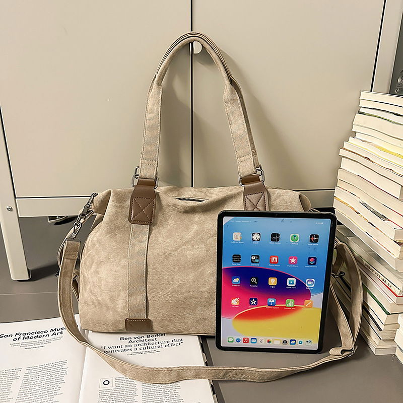Cuenta con doble manija reforzada para llevar en mano y correa larga regulable y desmontable para usar al hombro o cruzado.