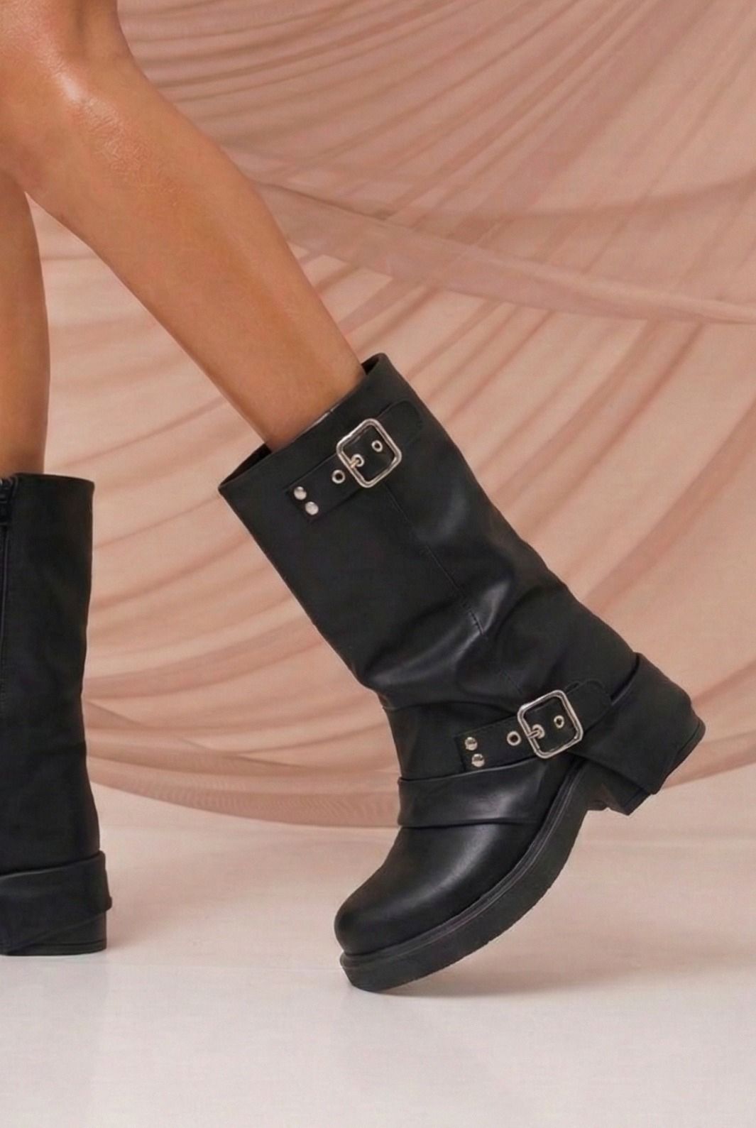 Bota de estilo biker con diseño canchero y actitud, con hebillas metálicas que elevan cualquier look. Su silueta relajada y base cómoda la hacen ideal para usar todo el día con personalidad.