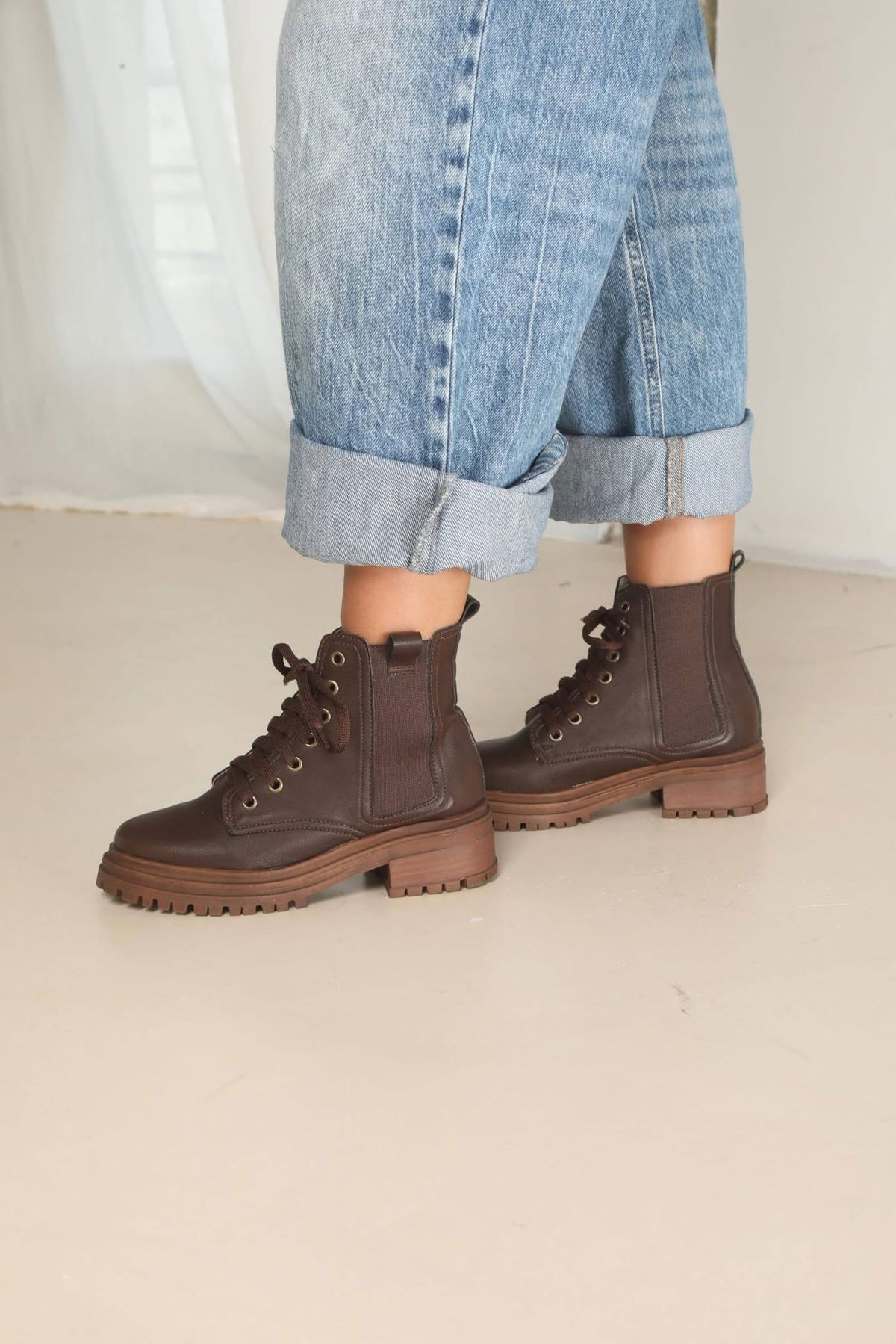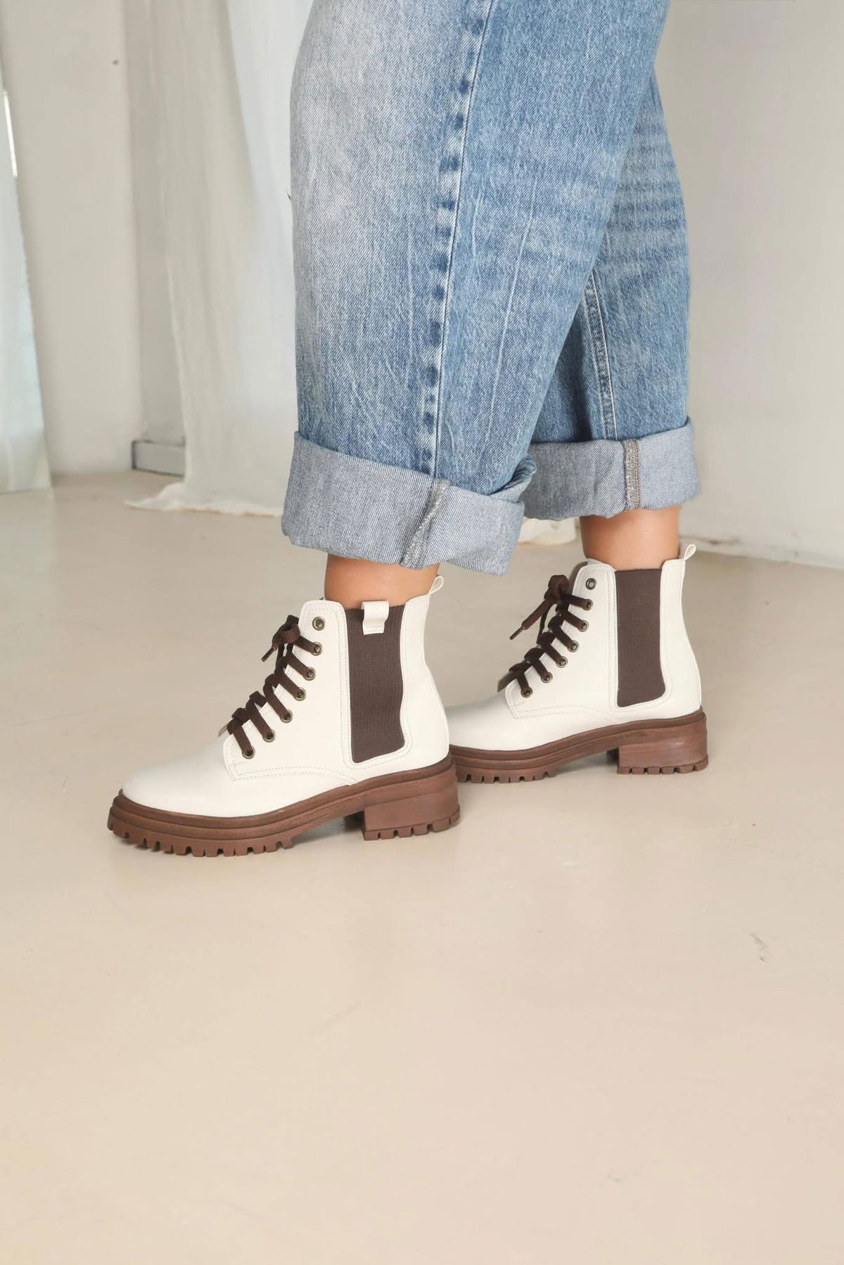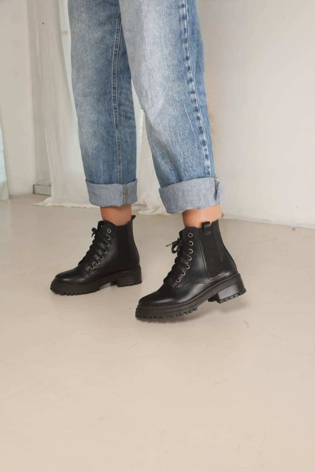 Borcego de estilo urbano que combina diseño y comodidad para el uso diario. Confeccionados con cordones frontales para un mejor ajuste, elásticos laterales que facilitan el calce y una base robusta con suela dentada que aporta estabilidad y personalidad al look.