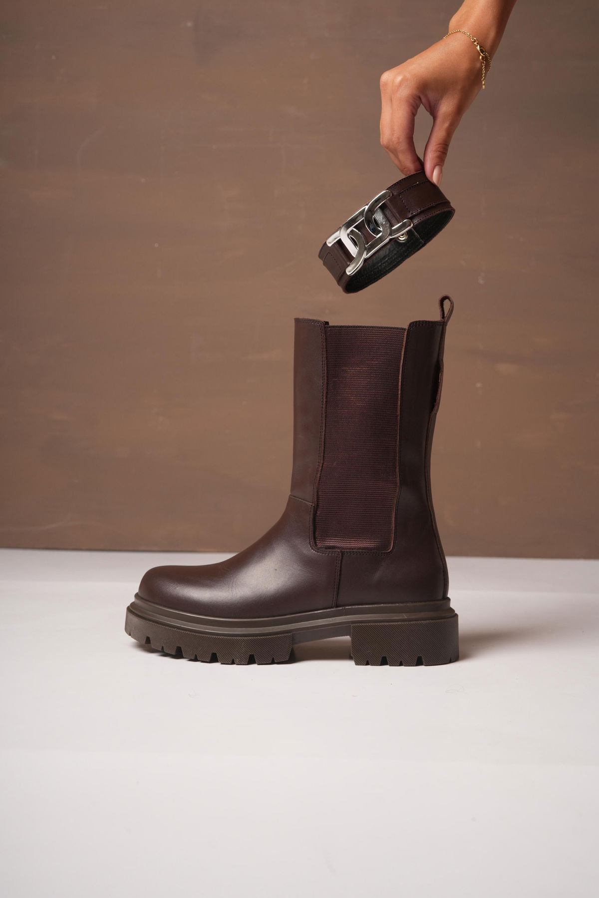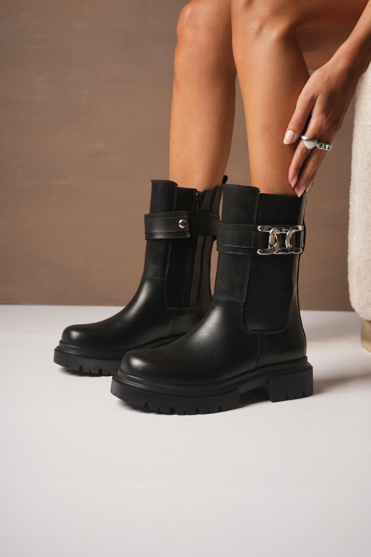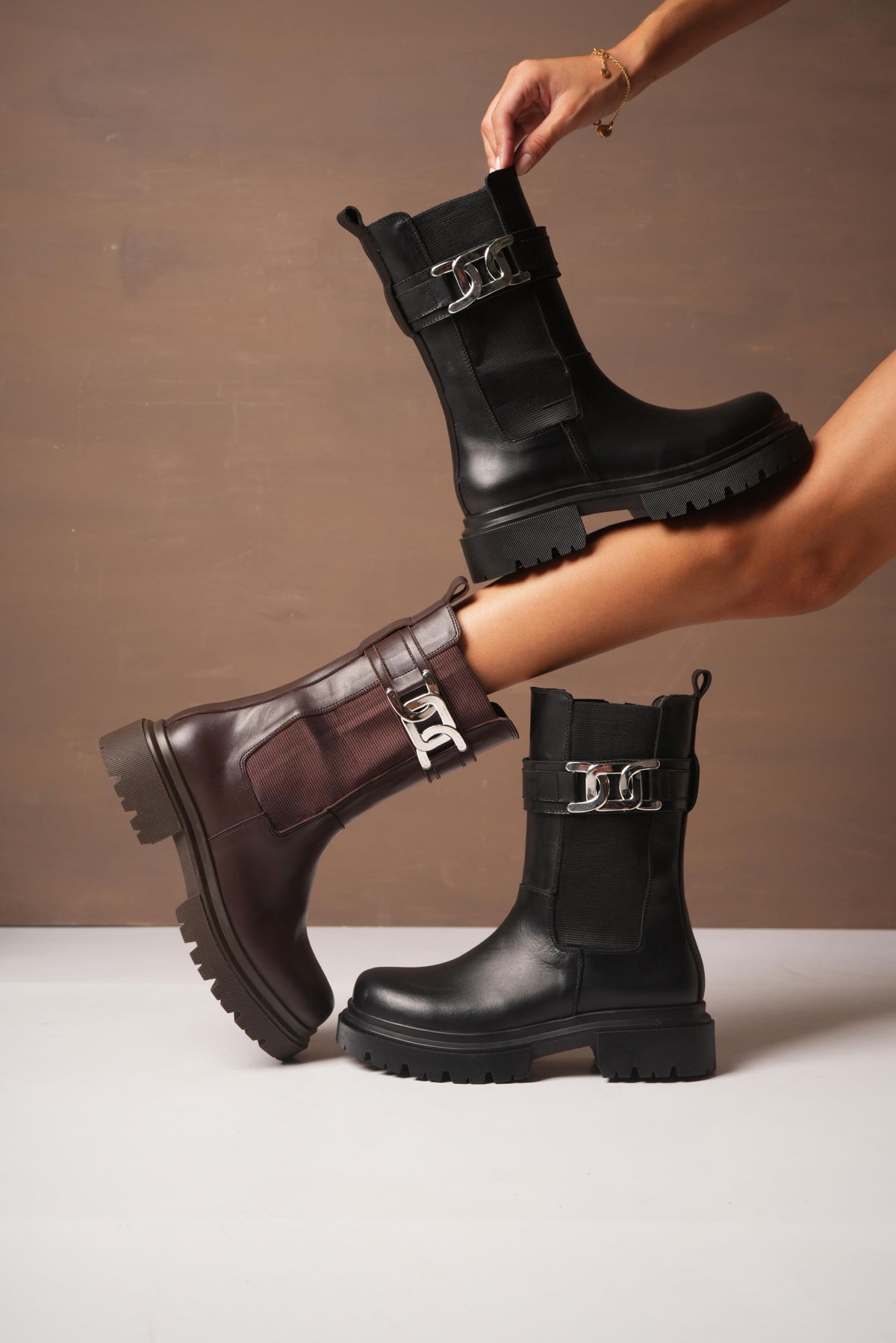 Borcegos con Base TR, elásticos laterales italiano. Cierre interno y Pulsera desmontable.