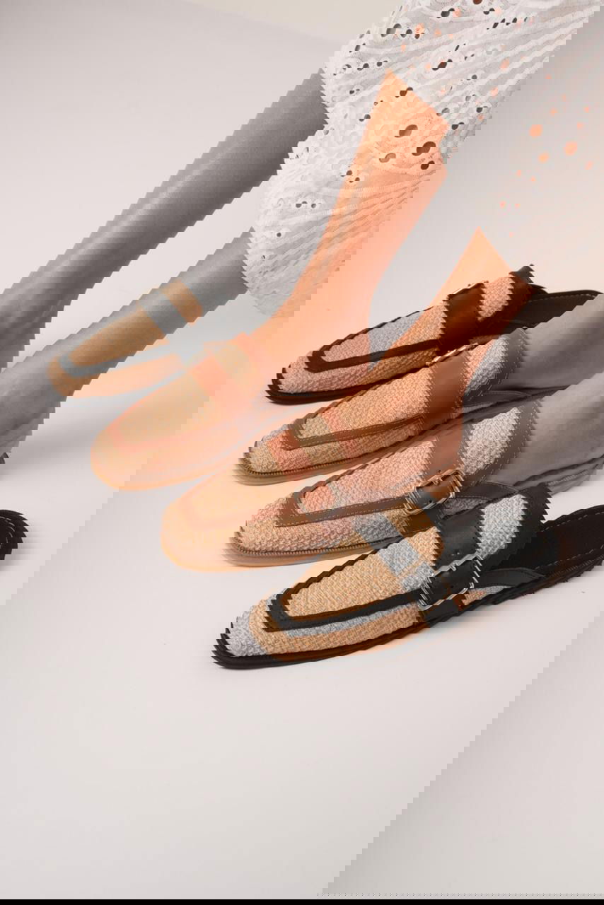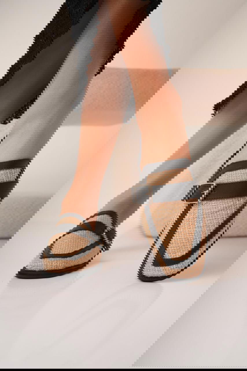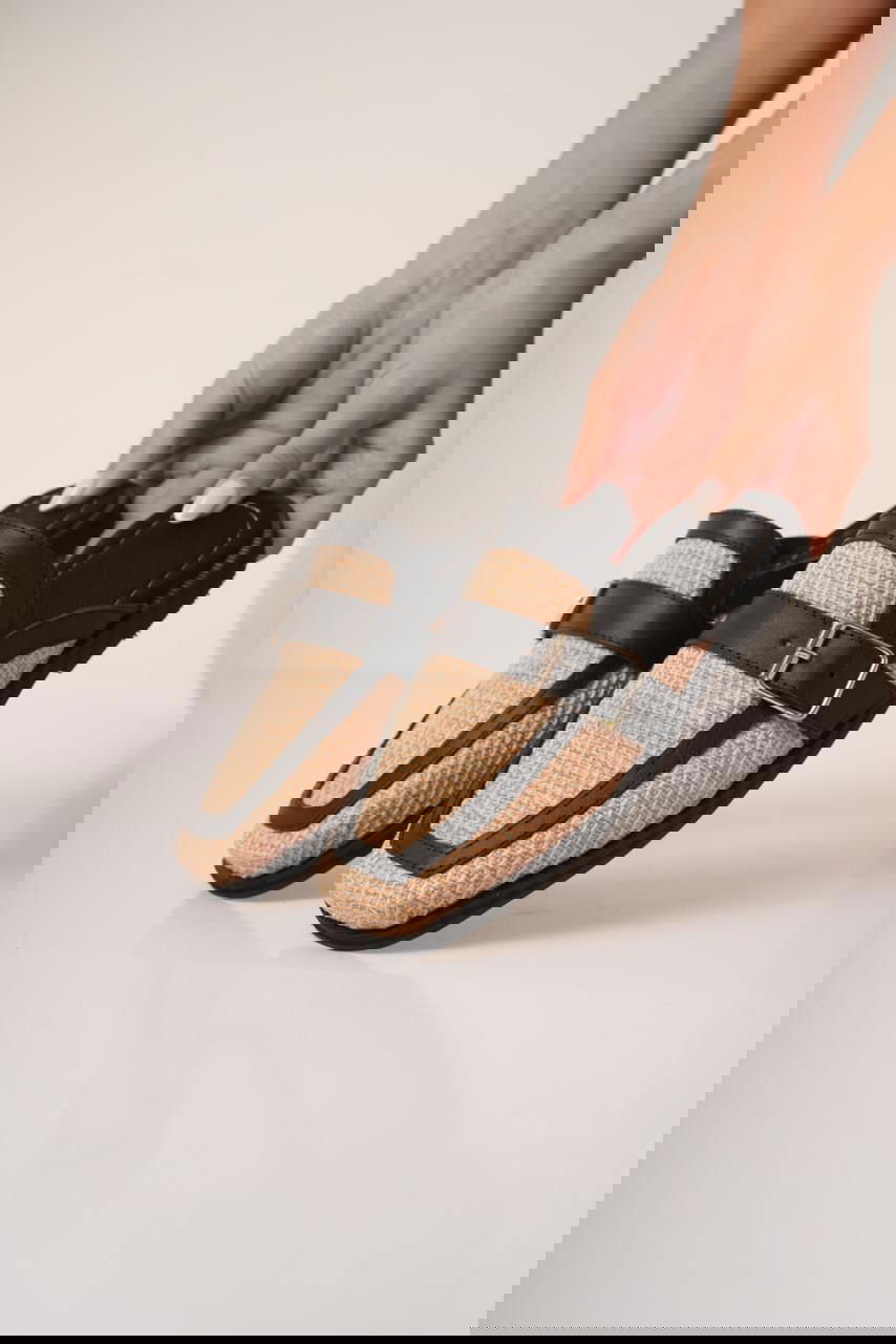 Chatitas tipo mule confeccionadas en rafia, combinadas con detalles y hebilla metálica regulable. De diseño fresco y canchero, con punta cuadrada suave y calce cómodo, ideales para sumar estilo natural y relajado a looks de verano, tanto urbanos como más relajados.