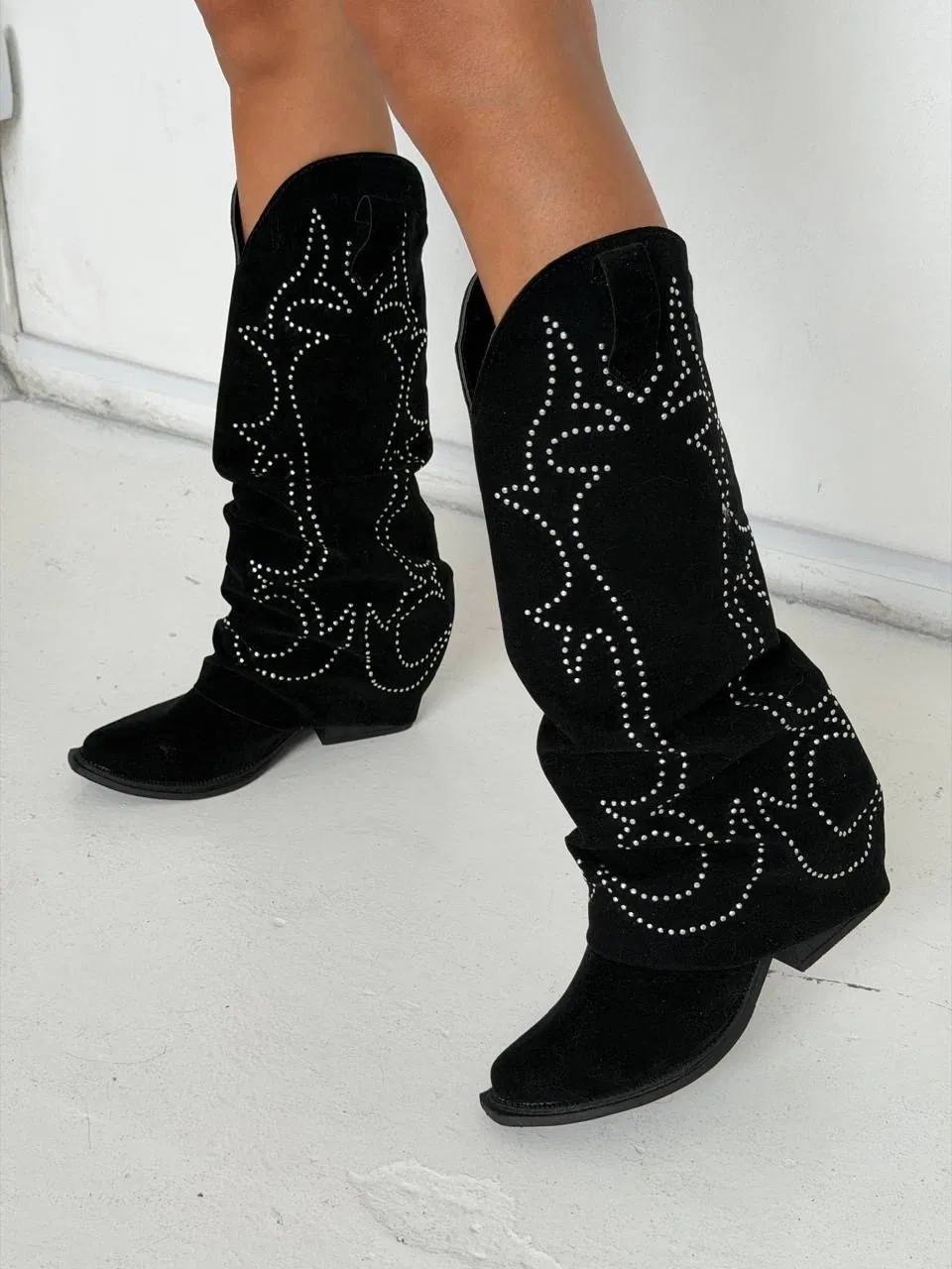 Características principales: - Caña alta para mayor protección y estilo. - Detalles en stras que realzan cualquier outfit. - Materiales resistentes y cómodos para un uso prolongado.
