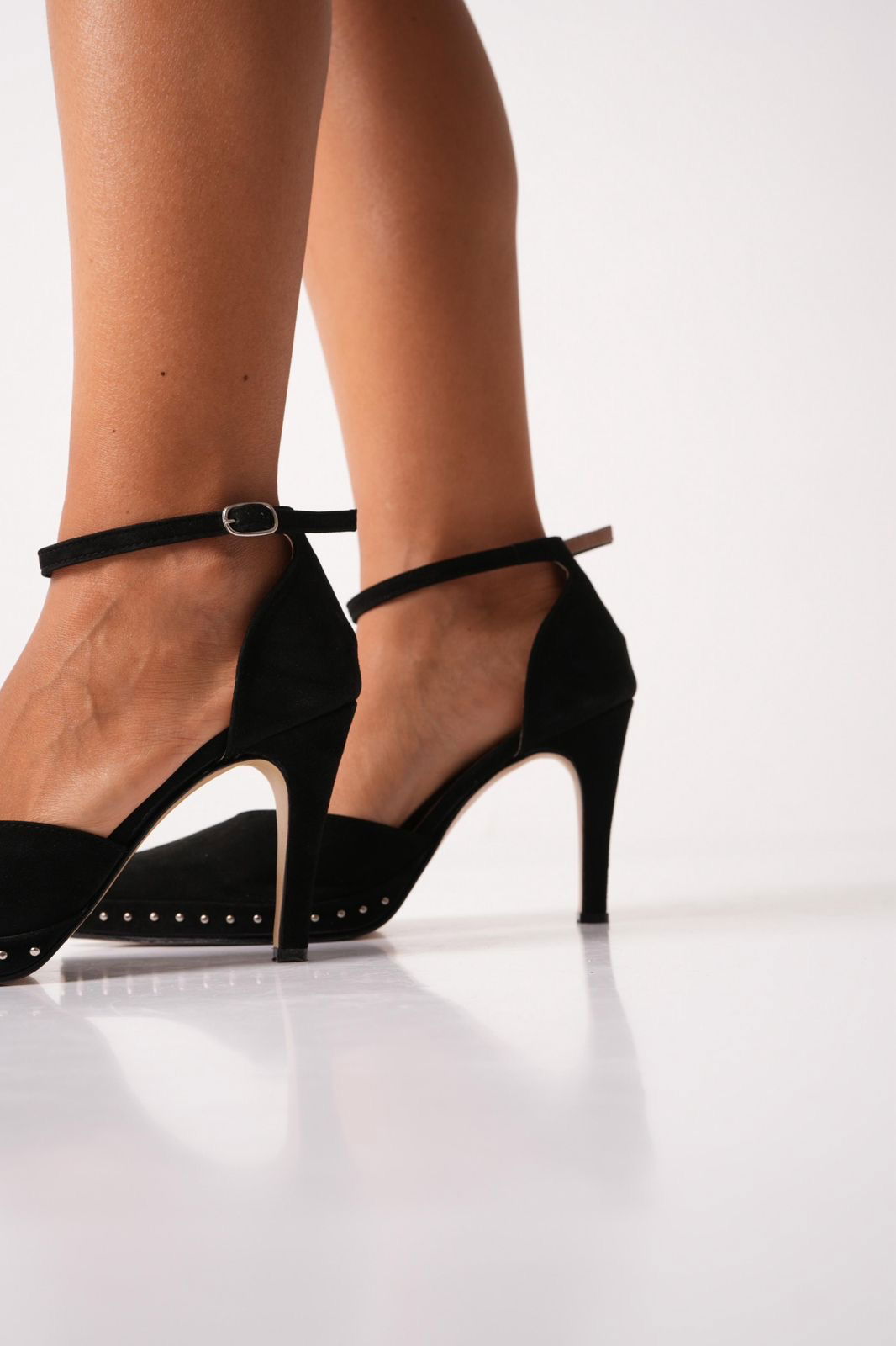 Hermosas Sandalias con detalle en finas y delicadas tachas, que le brindan un estilo muy elegante y sofisticado. Taco 9 cm