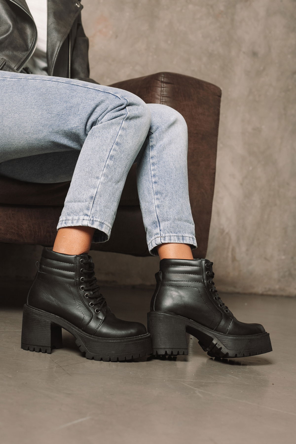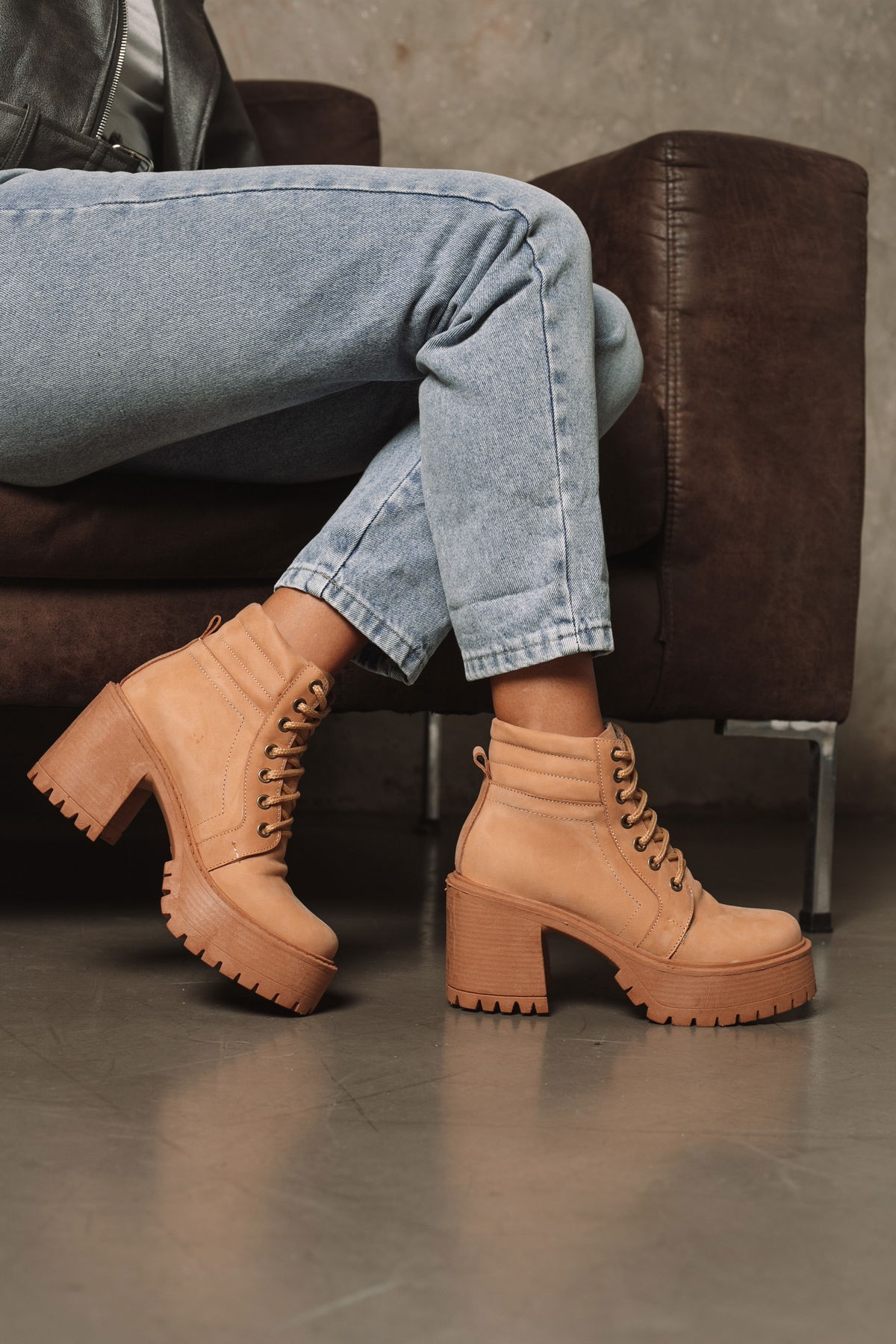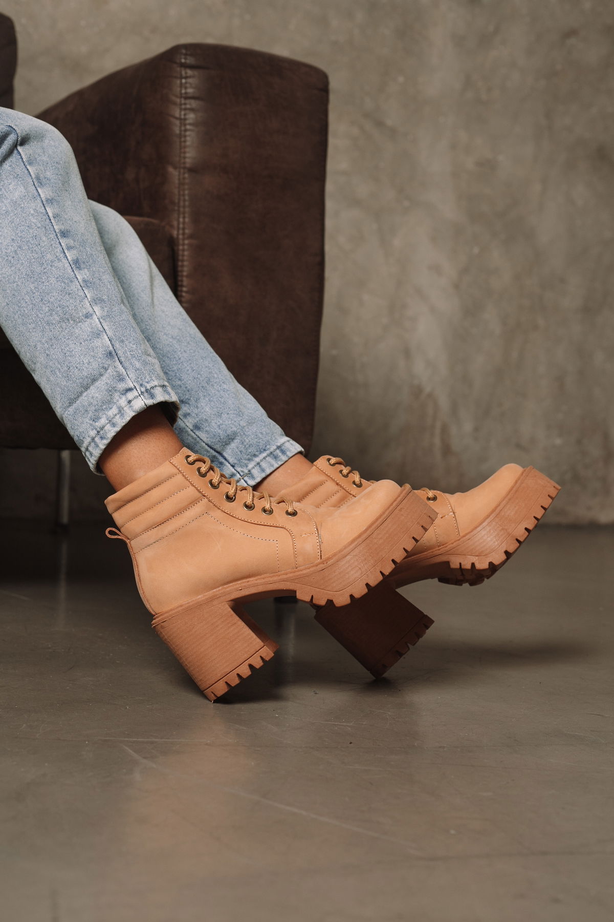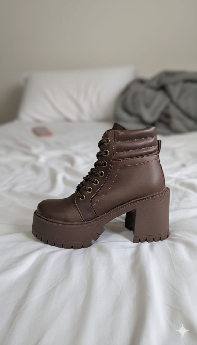 Borcego con plataforma y taco alto que combina actitud y estilo en un diseño súper canchero. Confeccionado en cuero, presenta cordones frontales para un ajuste perfecto, base robusta con suela dentada que aporta estabilidad y un taco ancho que estiliza sin perder comodidad. Ideal para elevar cualquier look.
