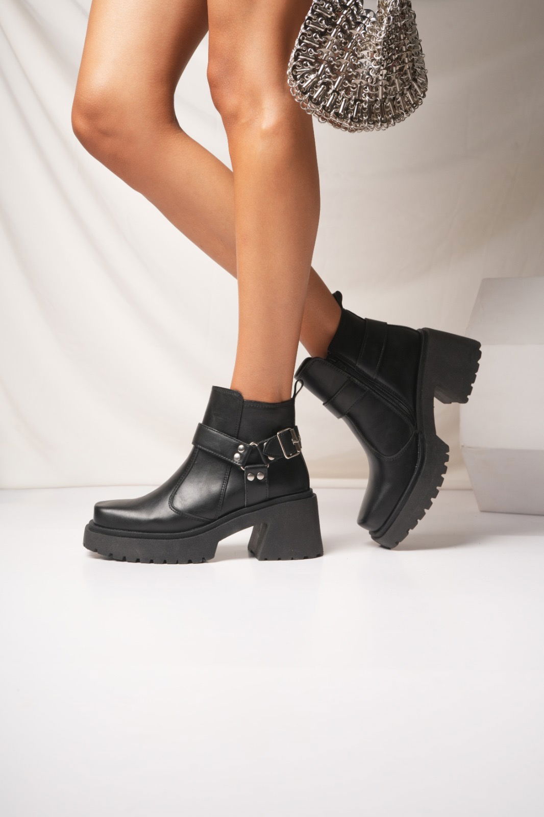 Botonera con Taco: 7 cm yCaña: 10 cm. Detalle en estribo. Base: Goma Antideslizante Cierre lateral interno.